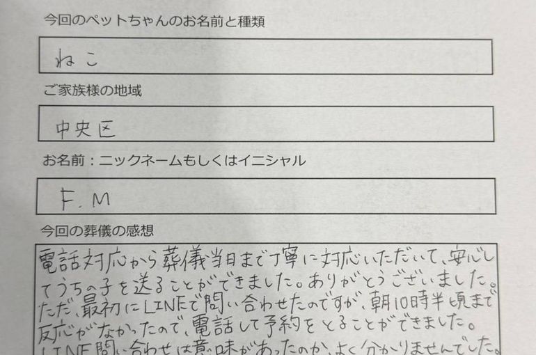 安心してうちの子を送ることができました。