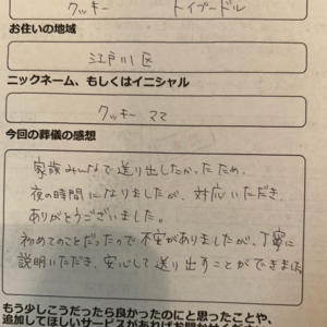 ペットちゃんとの最後の時間を、安心してお過ごしいただけたことを