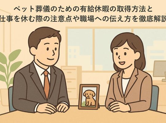 2025/12/06「ペットの葬儀で仕事を休みたいけれど、会社にどう伝えればいいのか…」「有給休暇は使えるの?忌引きの対象になるの?」と悩んでいませんか。 近年、ペットを“家族”...